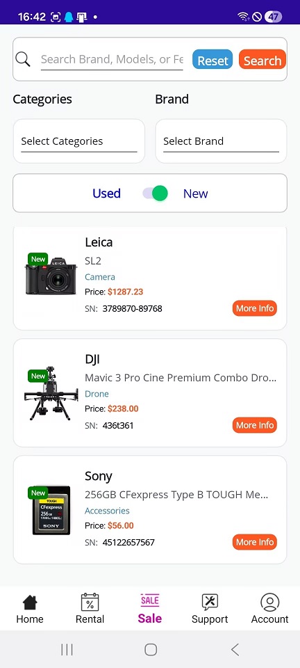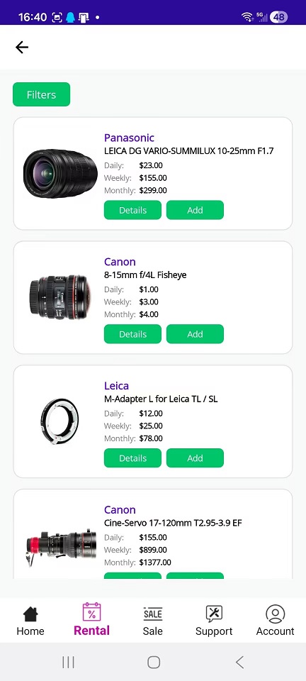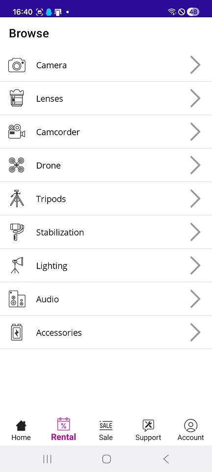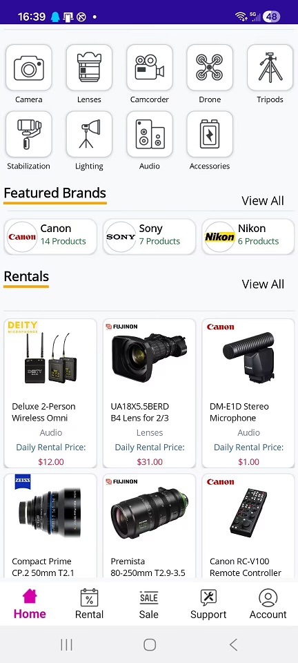 - Launch the app and start renting camera equipment!